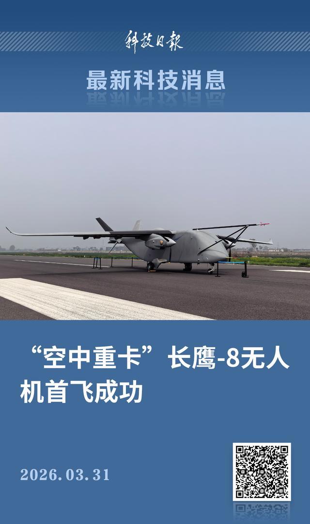 3月31日,由兵器工业集团北方公司长鹰无人机公司(简称北方长鹰)完全自主研发的长鹰-8大型货运无人机(CY-8),在郑州上街机场成功首飞,成为迄今全球完成飞行的最大货运无人机,标志着我国在7吨级智能无人运输平台领域实现重要突破。